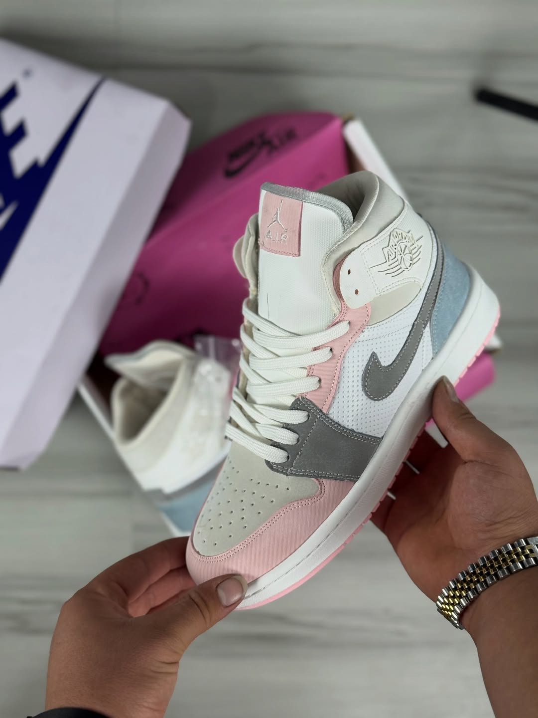 کفش کتونی زنانه جردن وان سفید و صورتی