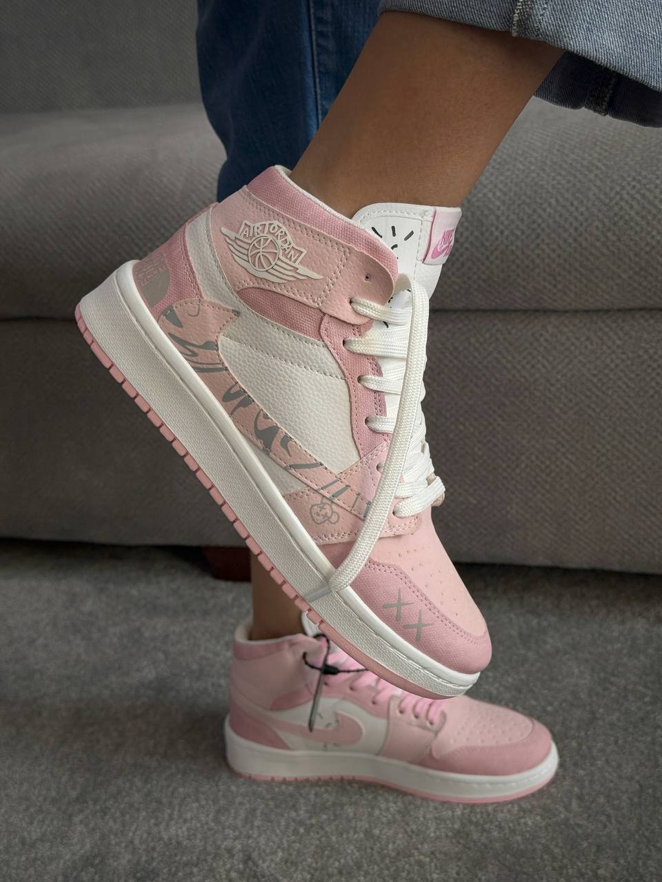 کتونی جردن ترواس ساقدار سفید و صورتی