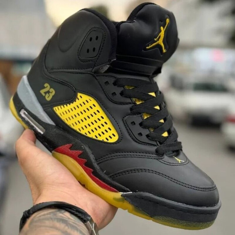 کتونی ساقدار جردن فایو رنگ مشکی و زرد