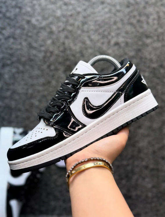 کتونی جردن وان رنگ مشکی سفید ورنی