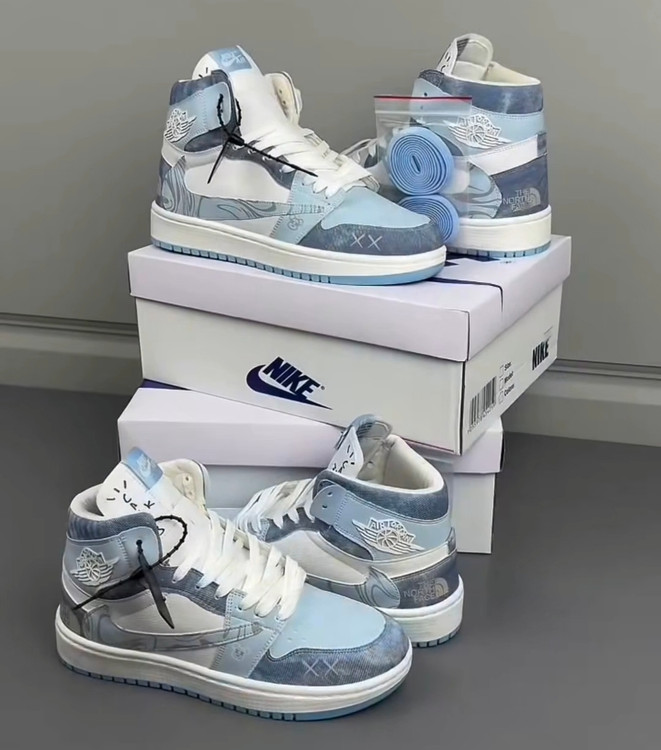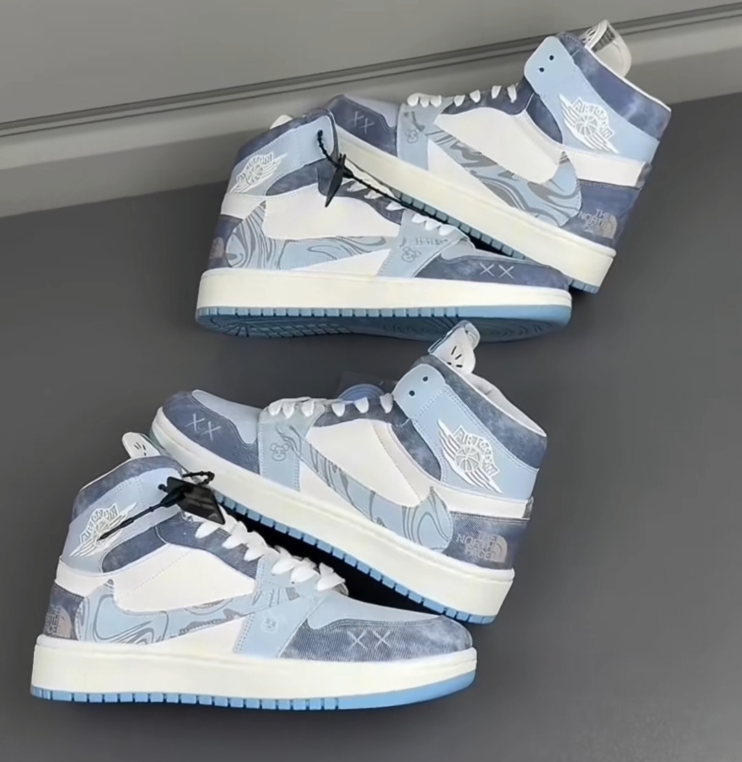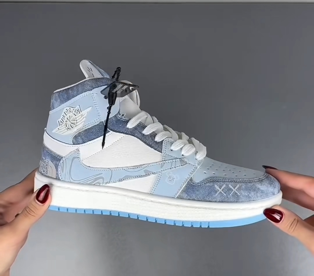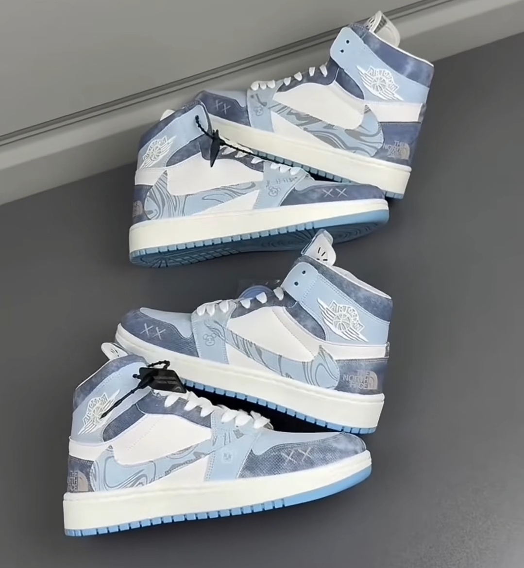 جردن وان ترویس اسکات مدل نورث فیس ترکیب رنگ سفید و آبی آسمانی در سایزبندی کامل از ۳۷ تا ۴۴ دور دوخت و کف دوخت شده قابل شستشو در ماشین لباسشویی پاخور استثنایی بهترین کیفیت موجود در بازار تولید شده با مرغوب ترین متریال وارداتی